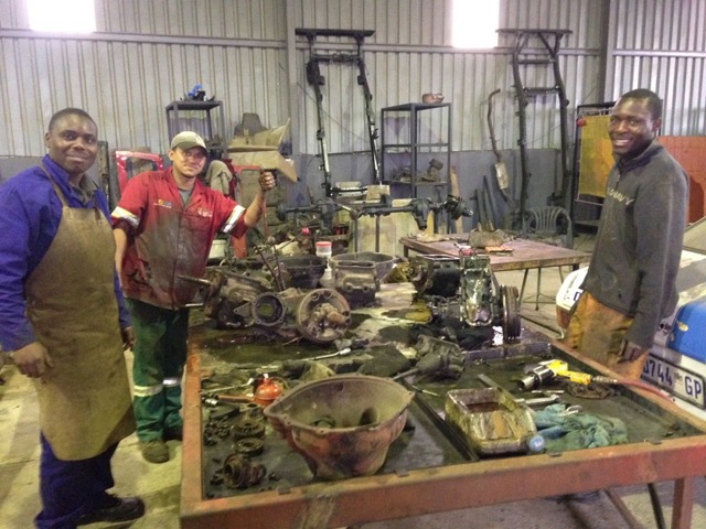 Apprentices learning to use the Oxyacetylene torch and various other tasks like putting in rivets on a chassis, as well as assembling and identifying problems on a gearbox